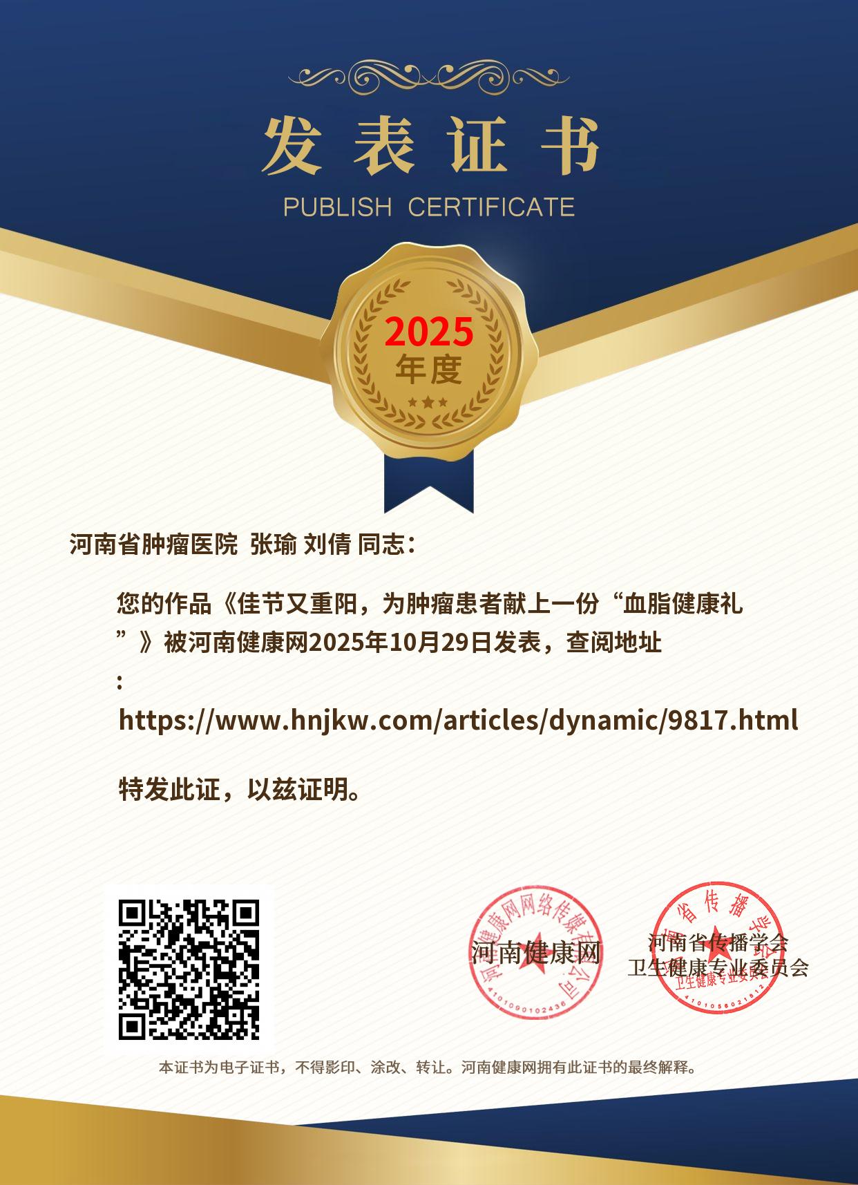 发表证书